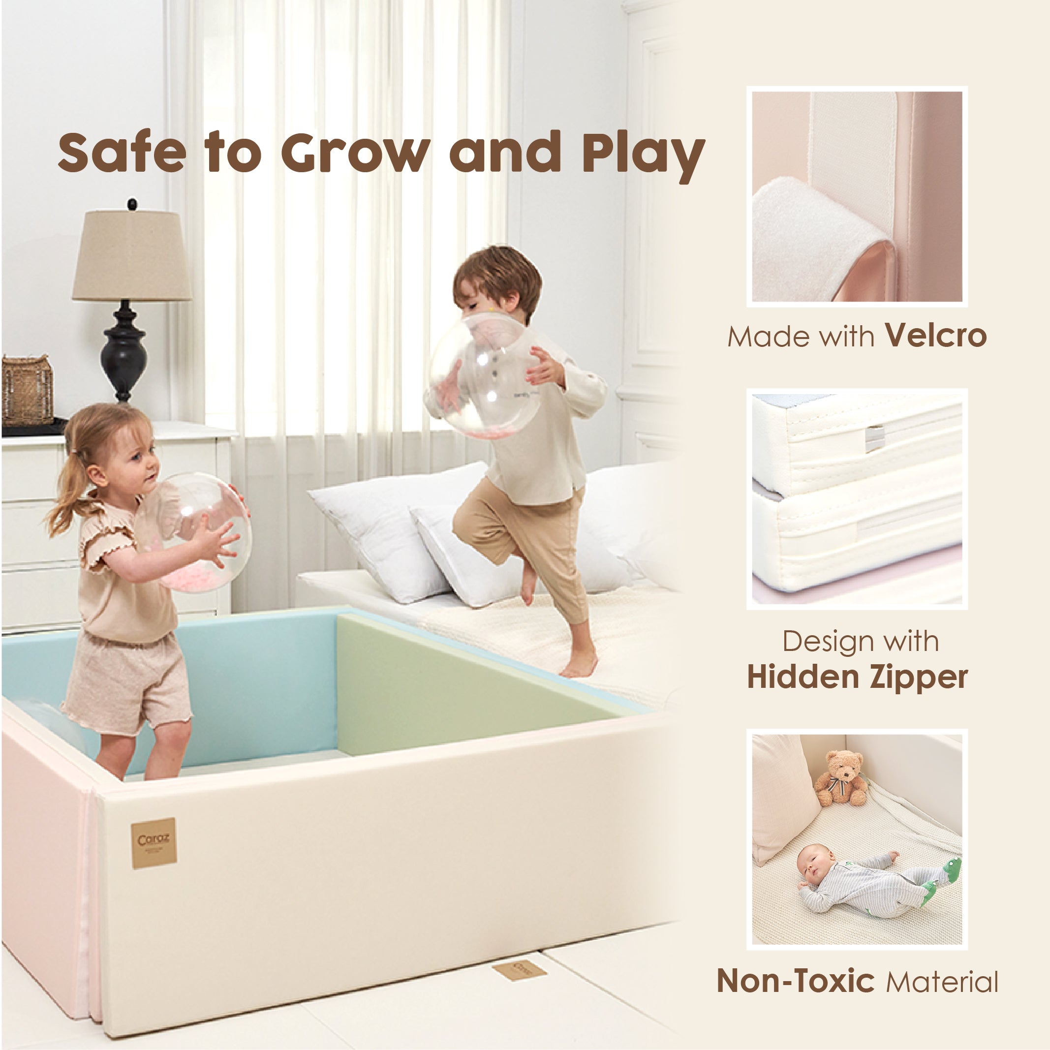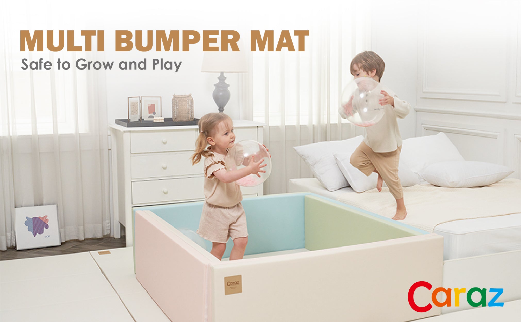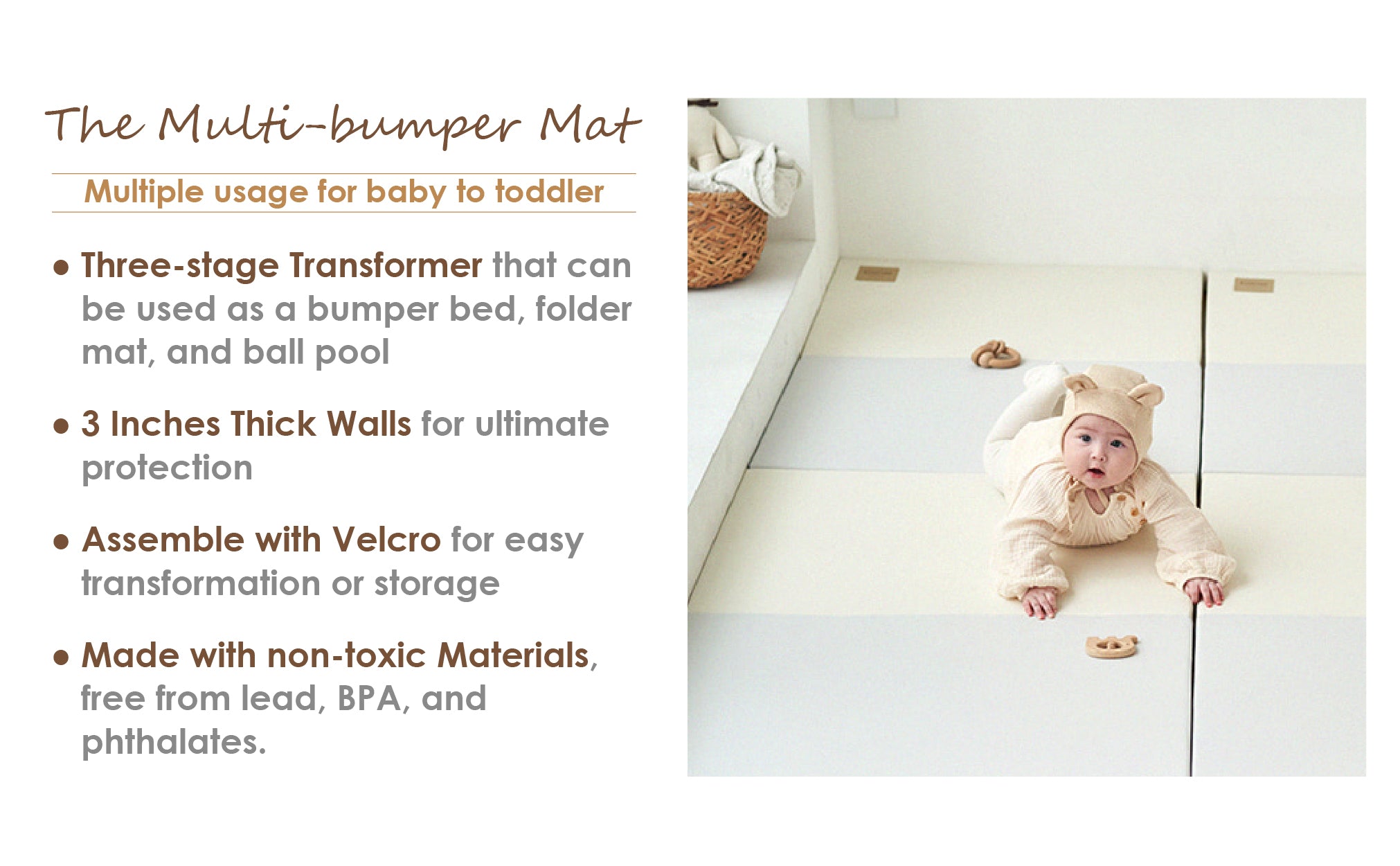 - Versatile 3-in-1 Play Haven: This Bumper Mat can be used as a fenced play area for crawling explorations, an open playmat for infant tummy time, a fun ball pool, or a cozy supervised nap area.